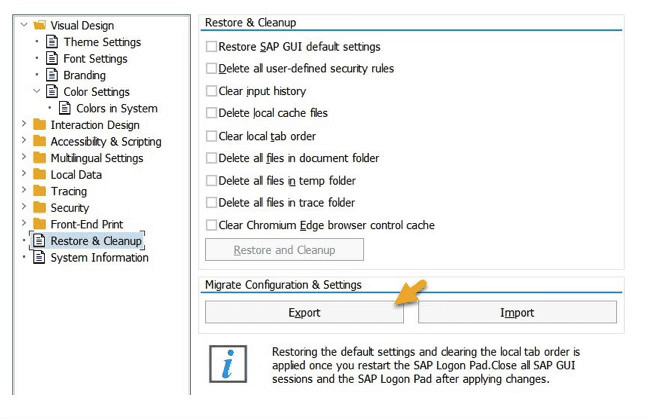 The main Configuration Data screen shows a list of the environment configuration "artifacts" (layouts, themes, etc.) that can be transferred.